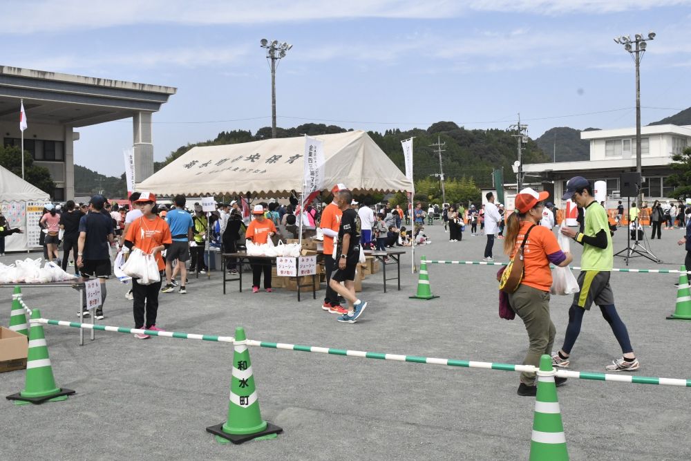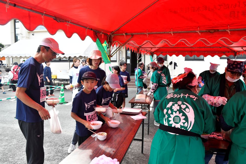 ゴール後には、町内地域づくり団体で作られた豚汁とおにぎりが振る舞われ、野口さんのトークショーとお楽しみ抽選会を開催して、会場全体がとても賑わいをみせました。